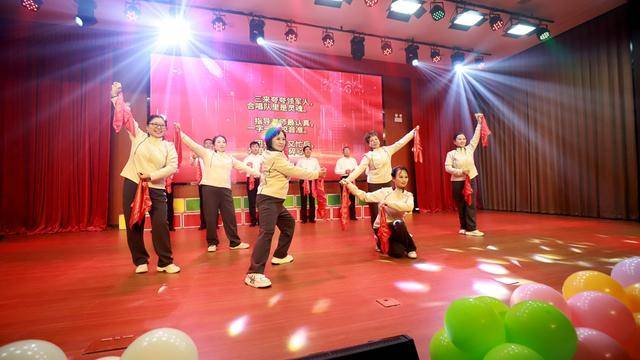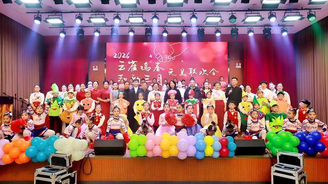 舞台剧《云雀少年说》以青少年视角讲述成长故事,凸显党建引领下的思想启蒙与价值塑造;音乐快板《三月迎新》节奏明快,用通俗生动的语言传递辞旧迎新的喜悦与对党的美好祝福。此外,独唱《苹果香》婉转悠扬,太极拳42式刚柔并济展现传统文化魅力,旗袍秀《好一朵女人花》尽显东方韵味,戏曲《风雪配》选段传承中华优秀传统文化,歌曲《我的好妈妈》传递感恩温情,动感组合《街舞》+《跆拳道小子》活力四射,将晚会氛围推向高潮。最后,晚会在合唱《世界赠予我的》《咱们说说知心话》及歌伴舞《相亲相爱》的温馨旋律中圆满落幕,歌声里饱含着师生对党的感恩、对新年的期盼与对团结奋进的追求。