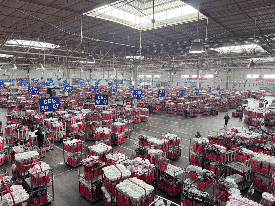 台车在昆明国际花卉拍卖交易中心运输鲜花。中国证券报记者王丽婧摄