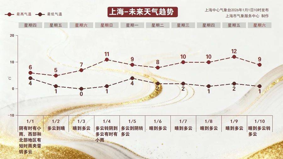节后首个工作日(1月4日),本市以多云天气为主,白天气温小幅回升至11℃左右,但早晚依旧寒冷。5日前后还将有冷空气补充影响,之后一段时间,申城将以晴或多云天气为主,气温总体维持在1℃~10℃之间,干冷特征明显。
