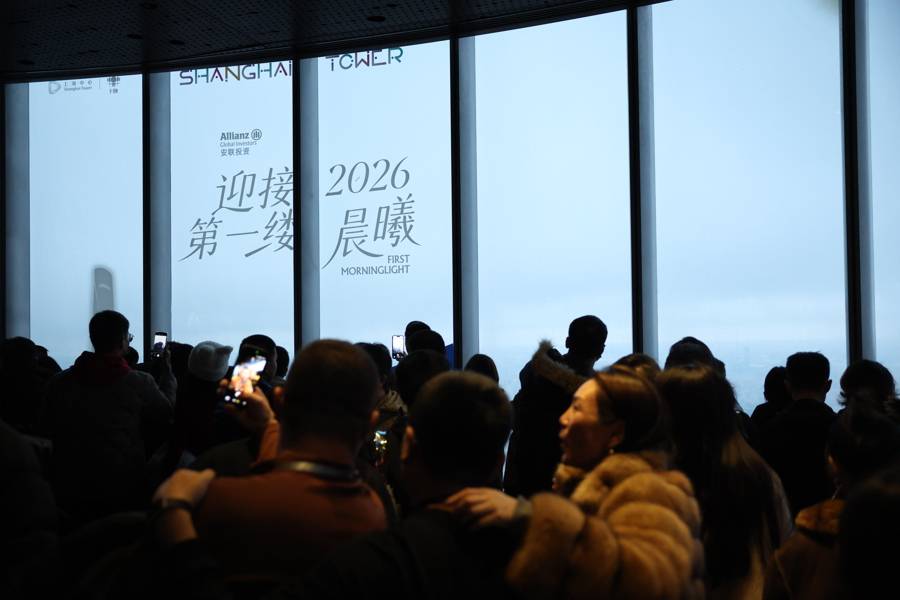 一元复始,万象更新。1月1日清晨,在上海中心118层上海之巅观光厅,数百名市民和游客早早来到这里,迎接2026年的到来。 摄影:陈炅玮