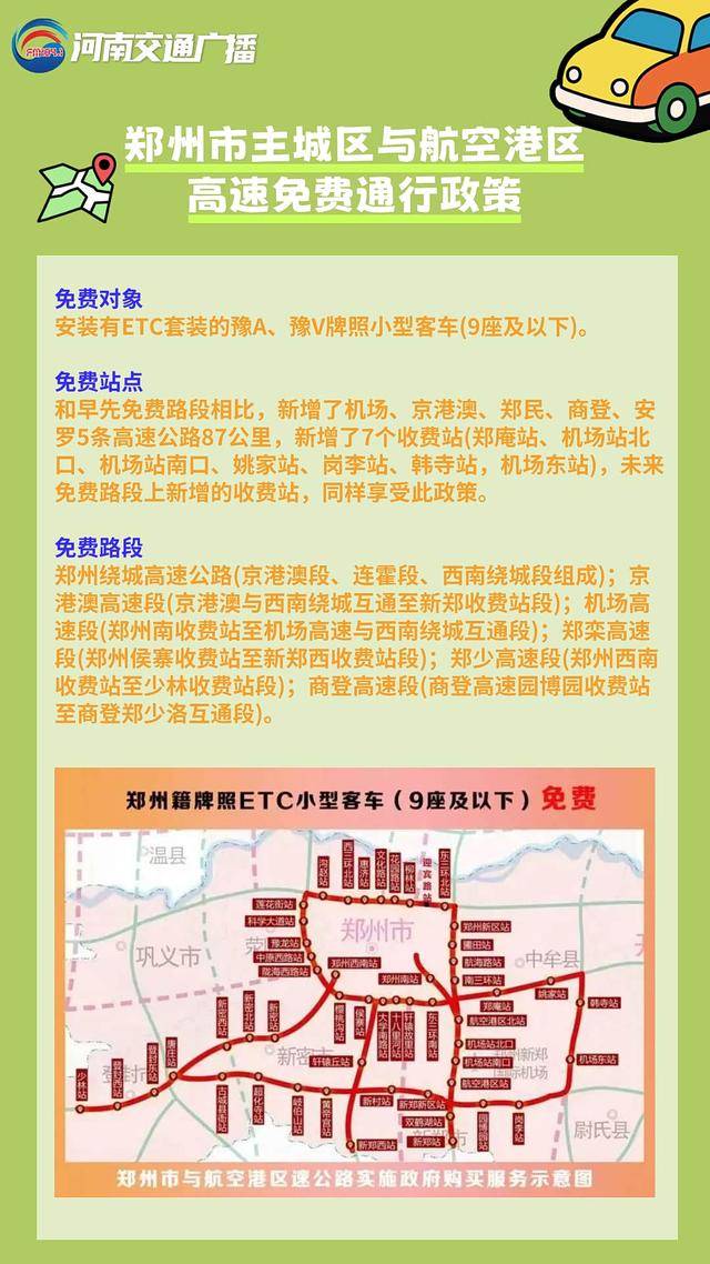 郑州市主城区与航空港区高速免费通行政策
