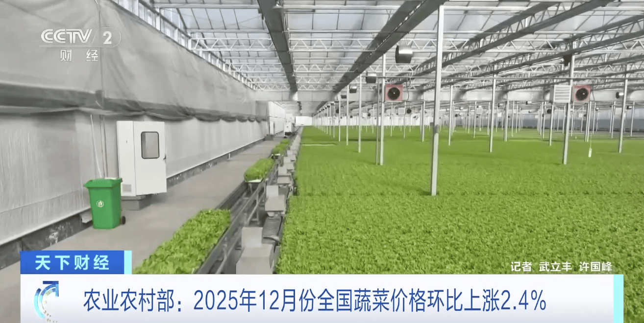 (央视财经《天下财经》)农业农村部最新数据显示,2025年12月份全国菜篮子指数为132.49,环比上涨4.84个点,同比上涨9.97个点,其中蔬菜价格环比上涨2.4%。