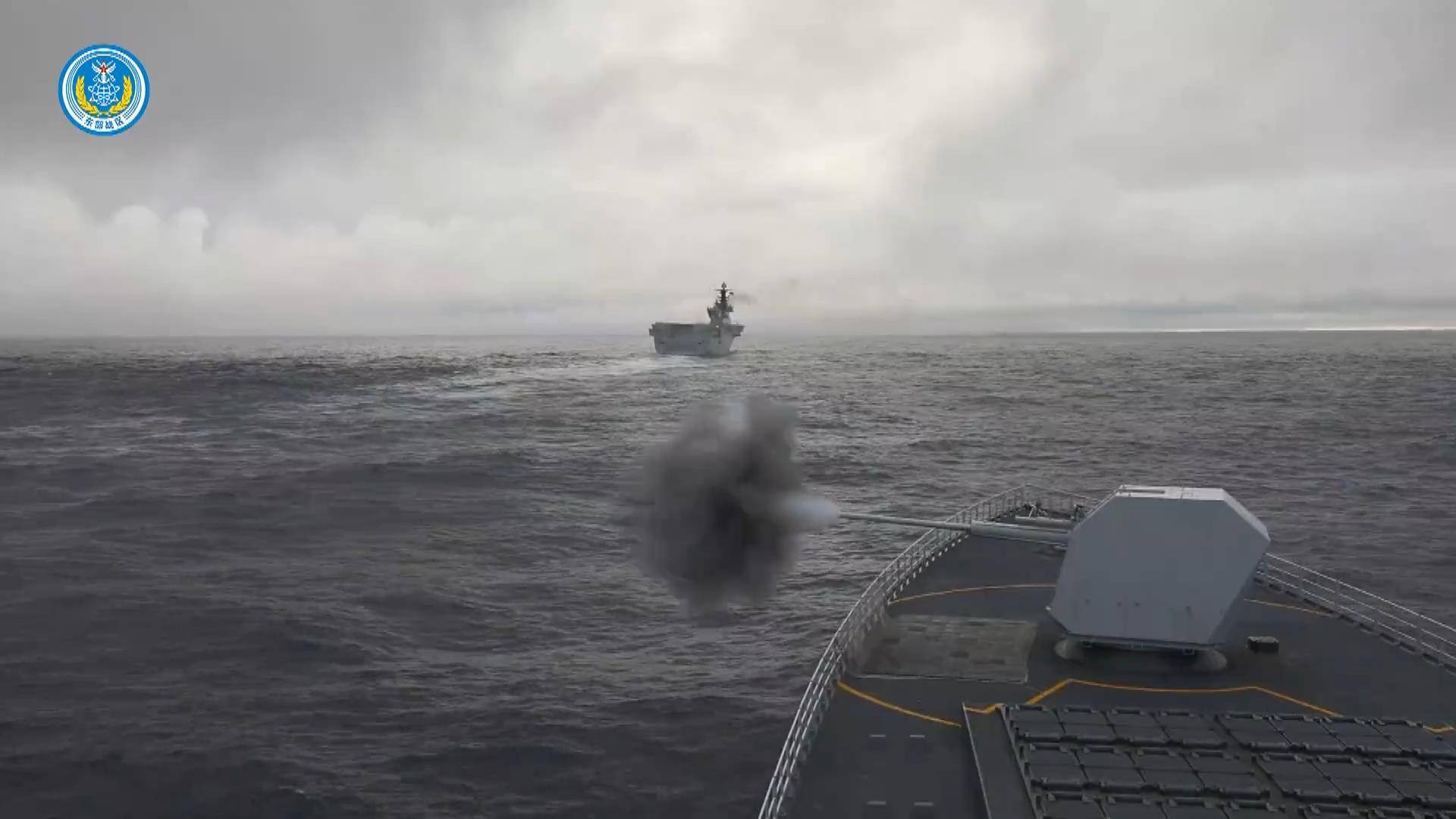 055万吨大驱在演习区开火