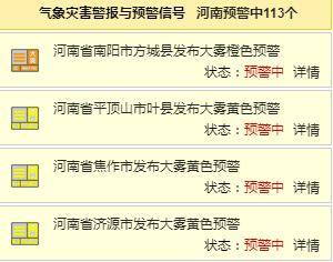 据预报,今天凌晨到上午,河南南部部分县市有雾。郑州市、新乡市、焦作市等,河南多地发布了大雾预警。截至1月2日9:30,共113条预警生效中!