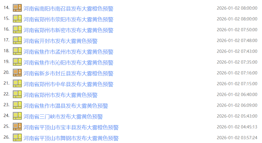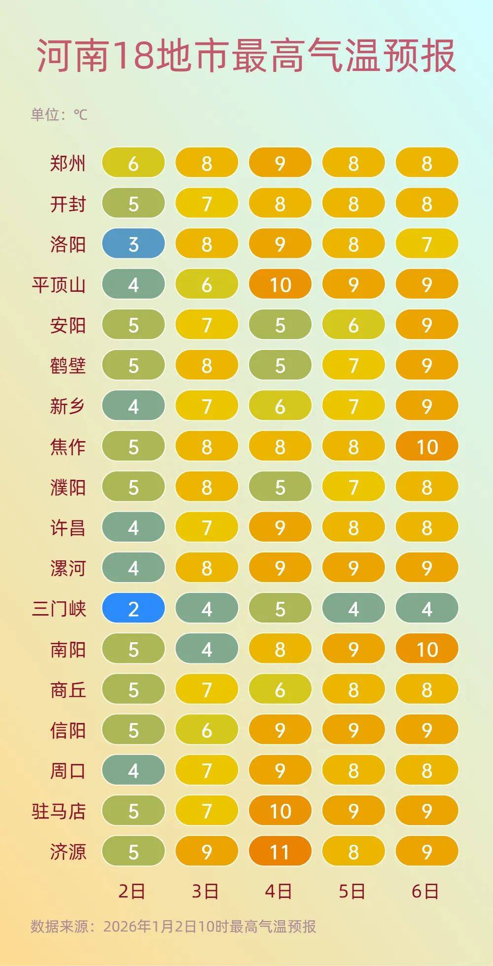 来源:河南省气象台2026年1月2日12时预报