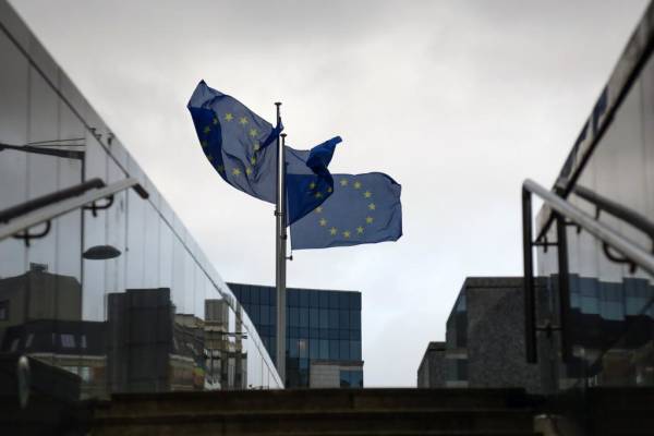 欧盟旗帜在比利时布鲁塞尔的欧盟委员会大厦外飘扬。资料图:新华社