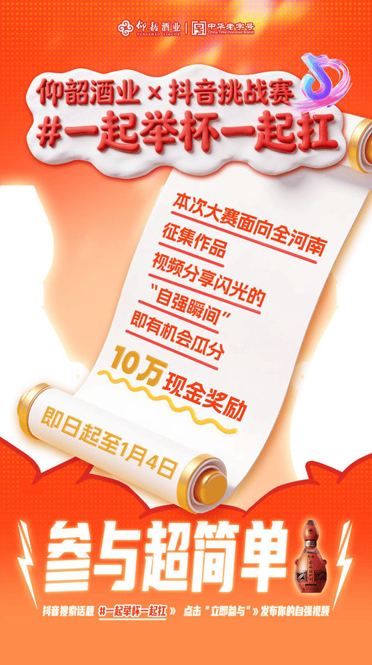 2025年12月26日,仰韶酒业发起的#一起举杯一起扛#抖音短视频大赛正式上线,成为品牌线上营销的核心载体。