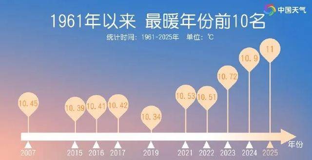 据国家气候中心消息,2025年全国平均气温11.0℃,打破了2024年的纪录。