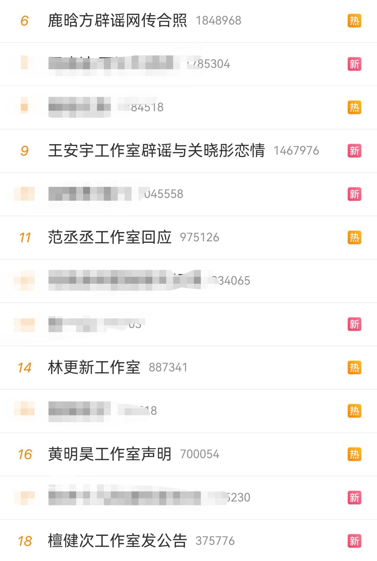 1月2日深夜至3日凌晨,一博主发布多条爆料博文,声称其与多名男艺人存在私密关系。1月3日,针对该博主发布的内容,鹿晗、林更新、檀健次、范丞丞等艺人工作室发布声明回应,多个相关词条登上微博热搜榜。