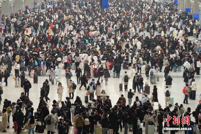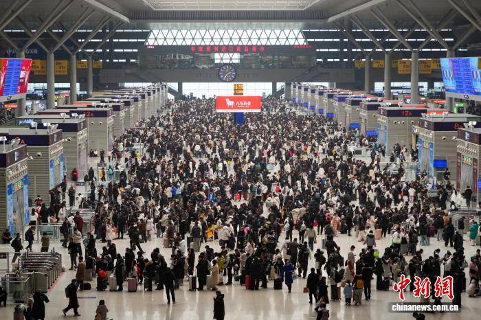 1月3日,河南郑州,郑州东站候车大厅内人头攒动。中新社记者 范晓恒 摄