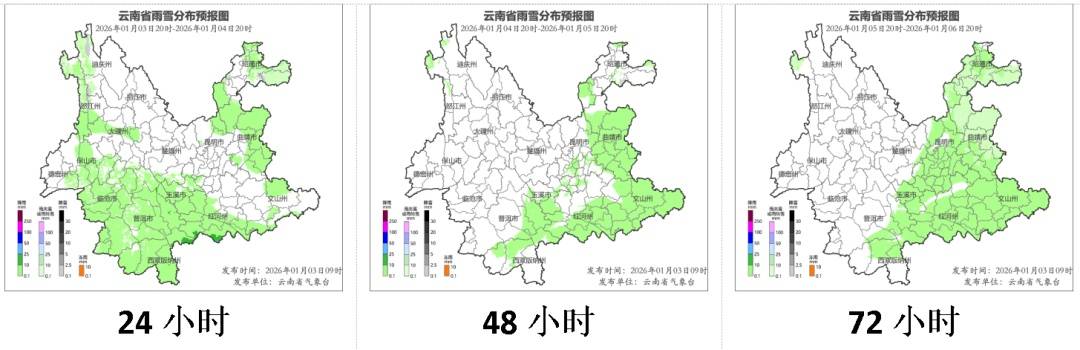 2026年1月3日20时至4日20时,迪庆州、怒江州、丽江市、大理州、德宏州、保山市、临沧市、普洱市西部、西双版纳州、楚雄州、昆明市、玉溪市、昭通市南部、曲靖市北部和中部三级,其他地区四级。