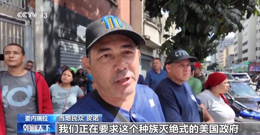 当地民众 皮诺:我们正在要求这个种族灭绝式的美国政府,要么把我们的总统交还给我们,要么提供他仍然活着的证据。我们的总统是在一次卑劣、可耻的行动中,被这个帝国主义政府绑架并带走的。他们并不关心自由,也不关心民主,他们关心的只有我们的石油,只有我们的自然资源。