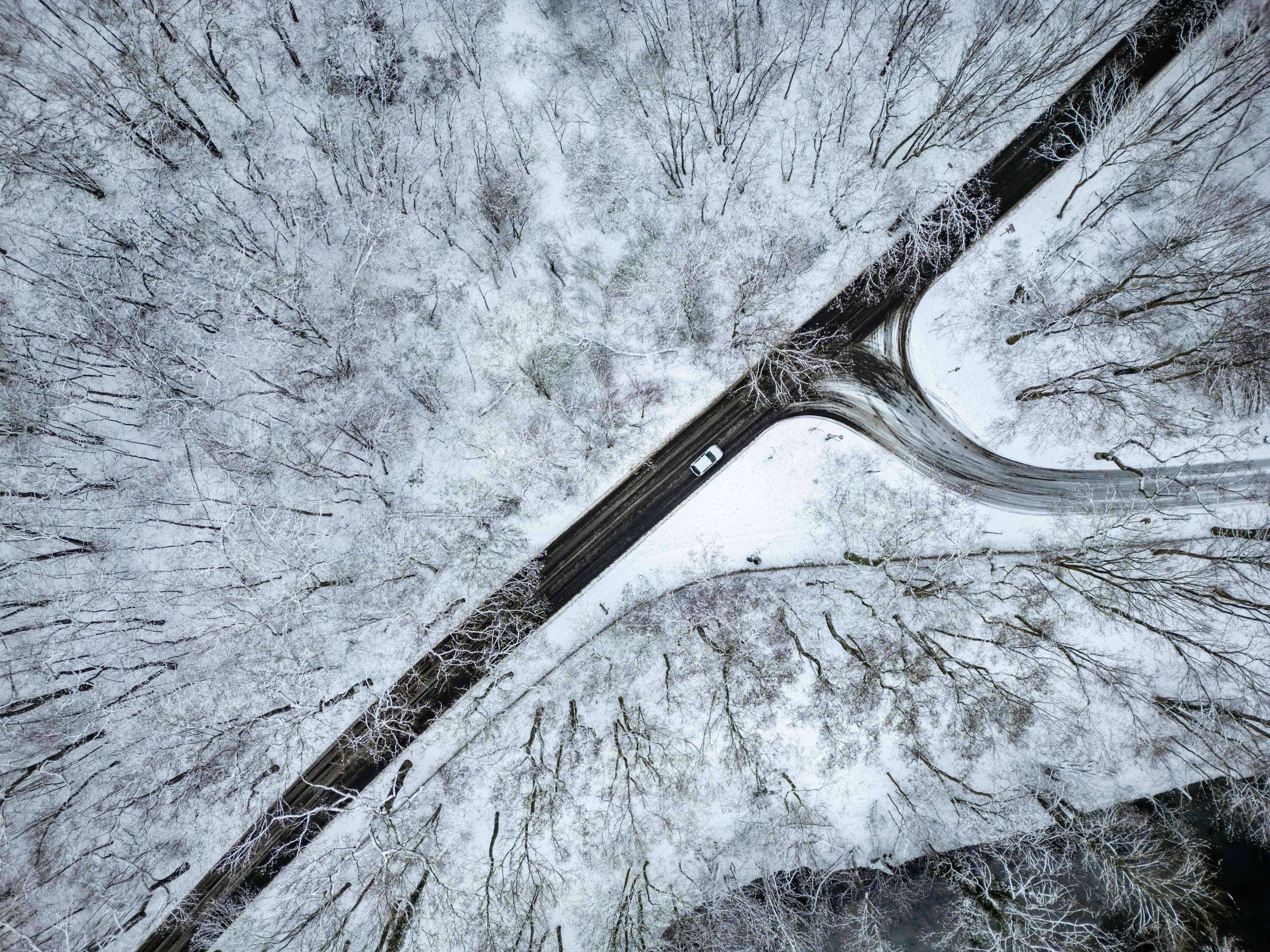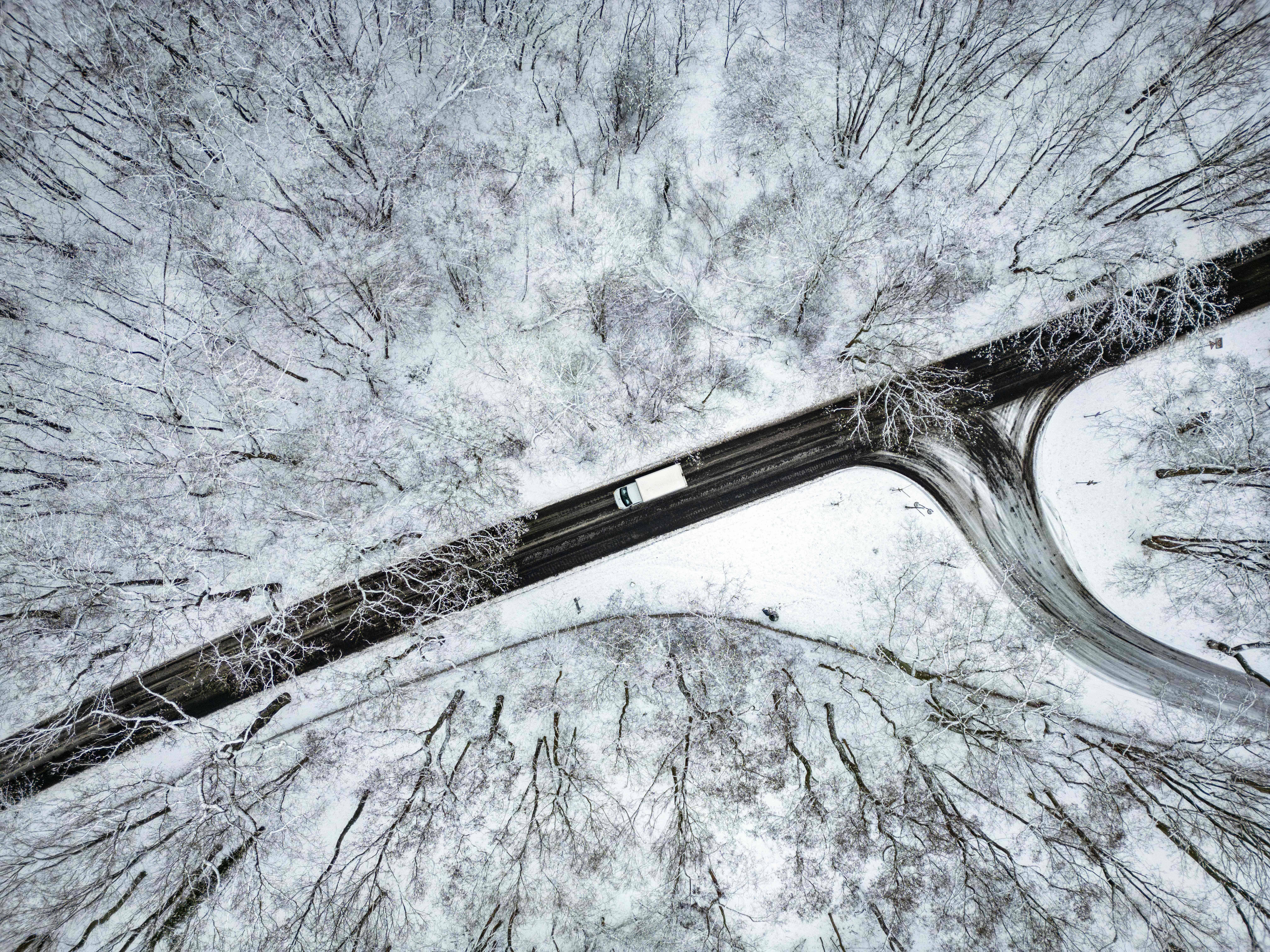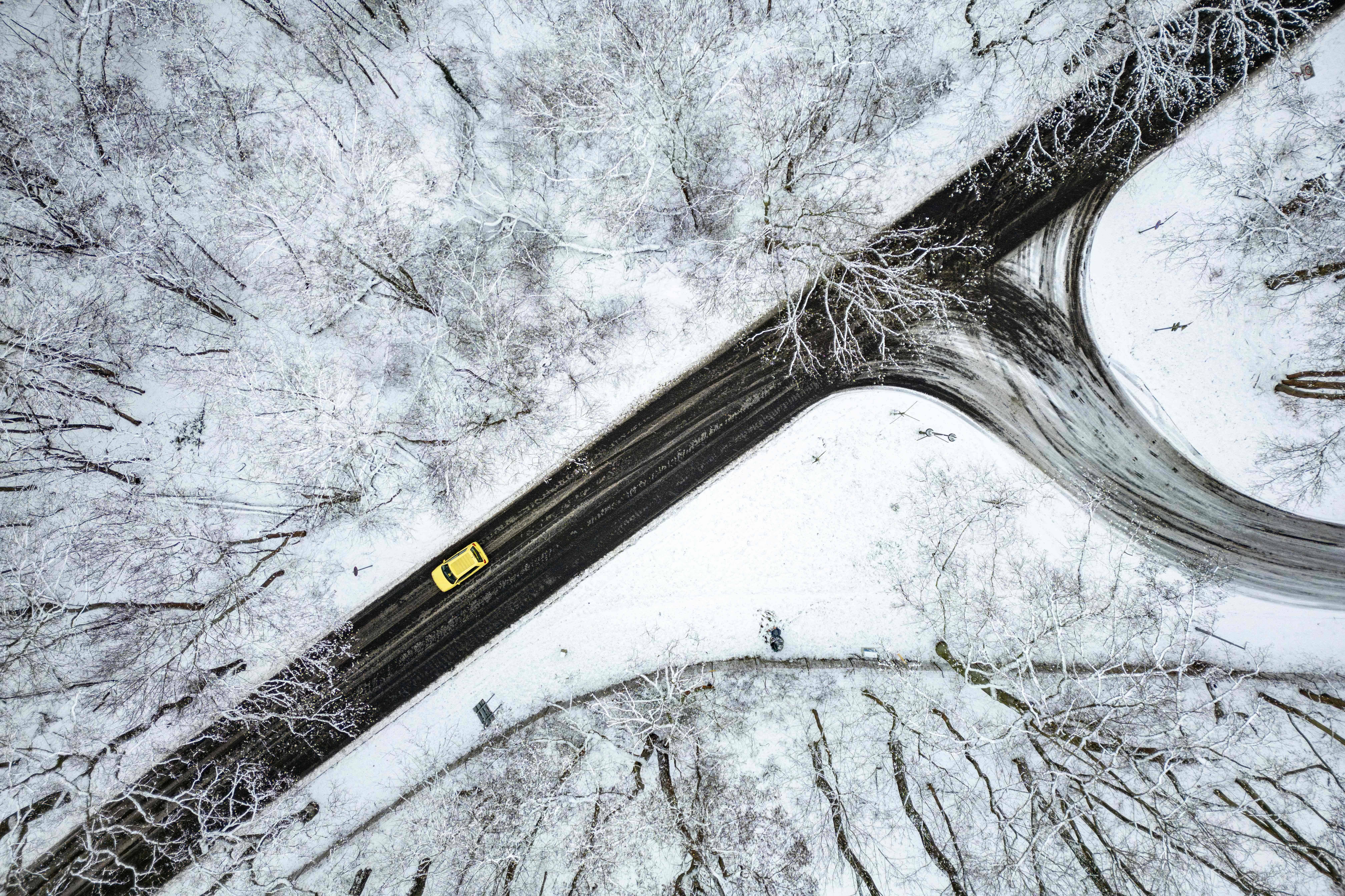这是1月3日在德国柏林航拍的雪后的林间公路。 新华社/法新