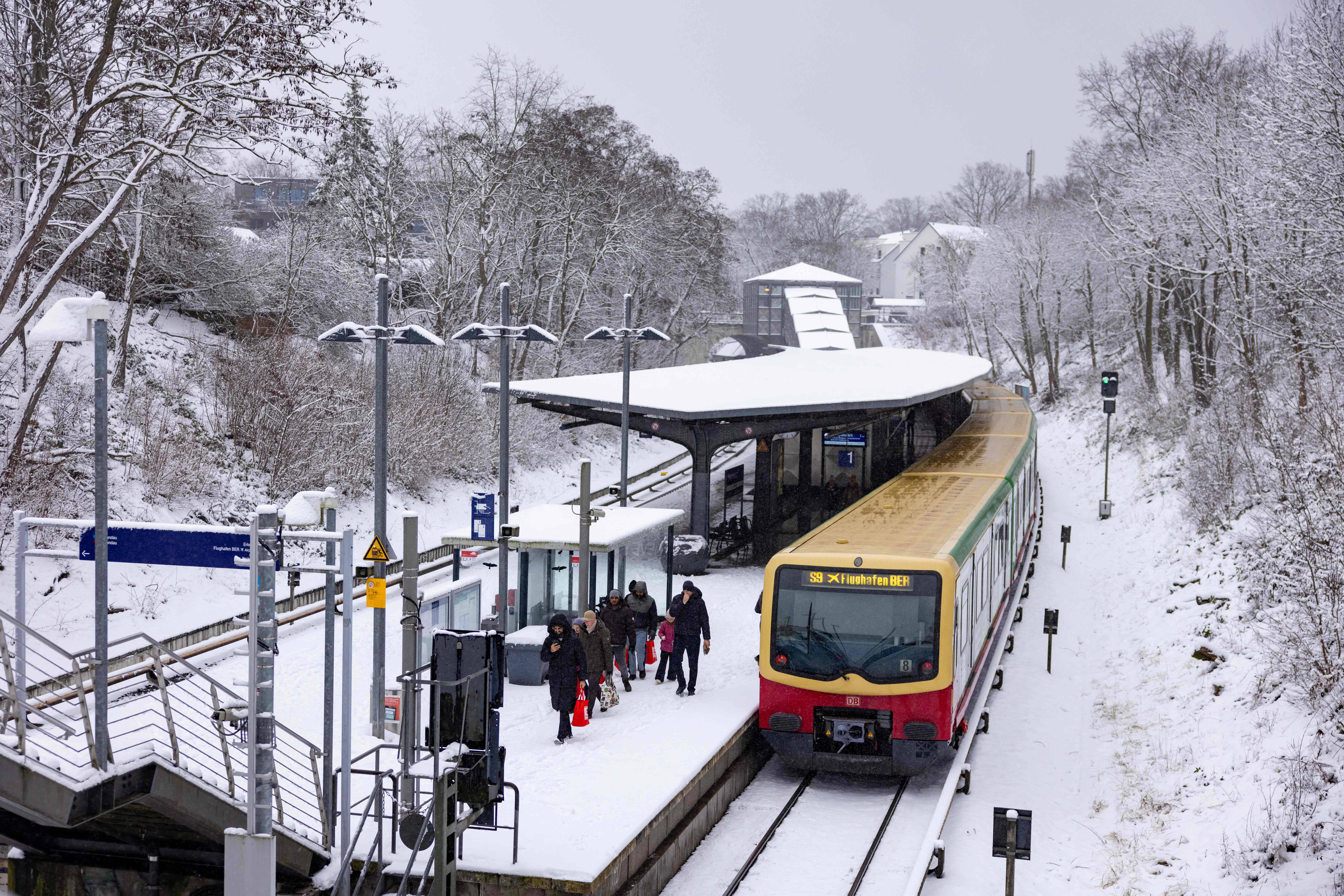 1月3日,在德国柏林,人们走过被积雪覆盖的车站站台。 新华社/法新