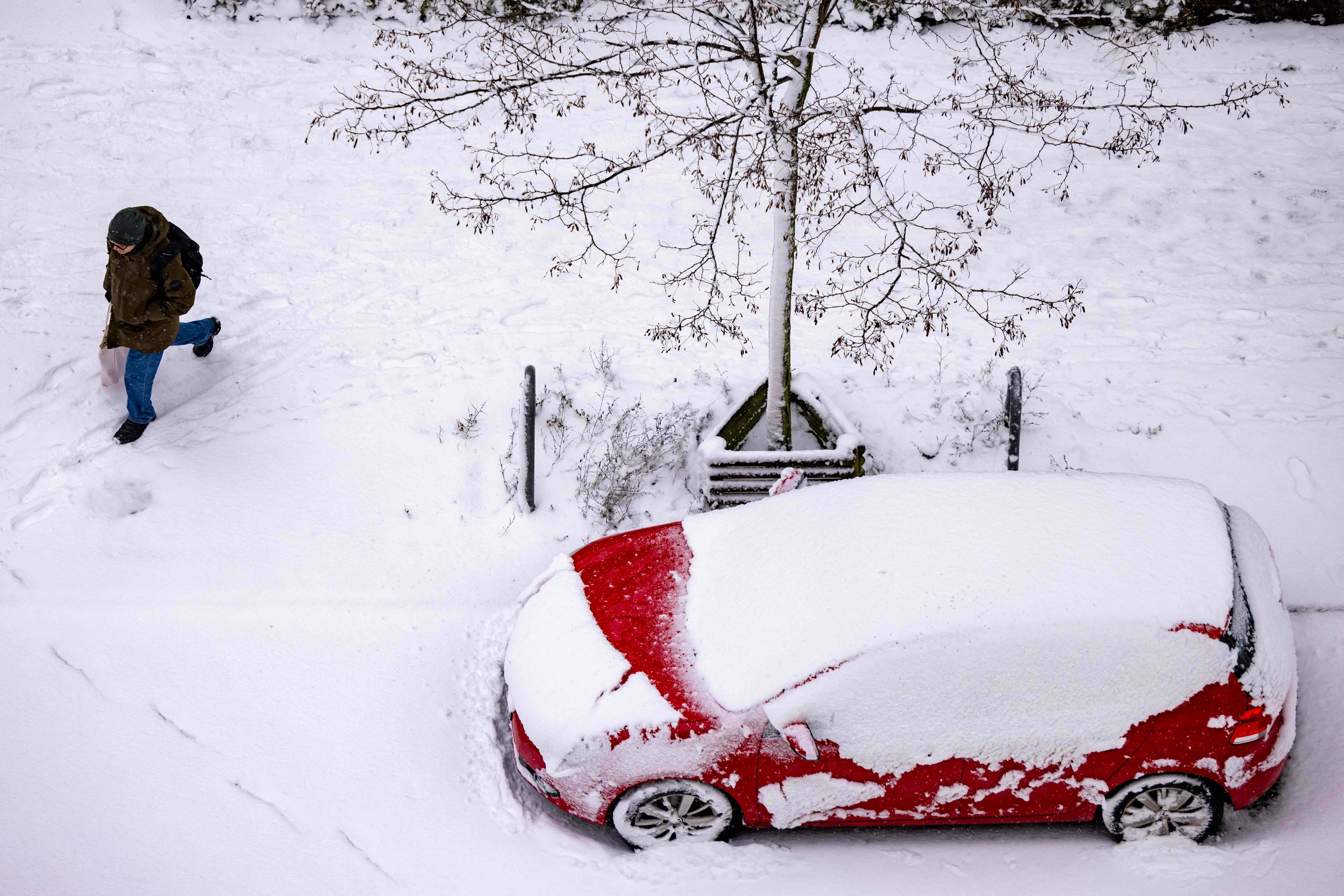 1月3日,在德国柏林,一名男子经过被积雪覆盖的车辆。 新华社/法新