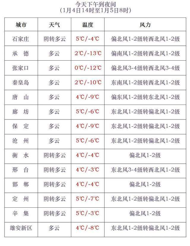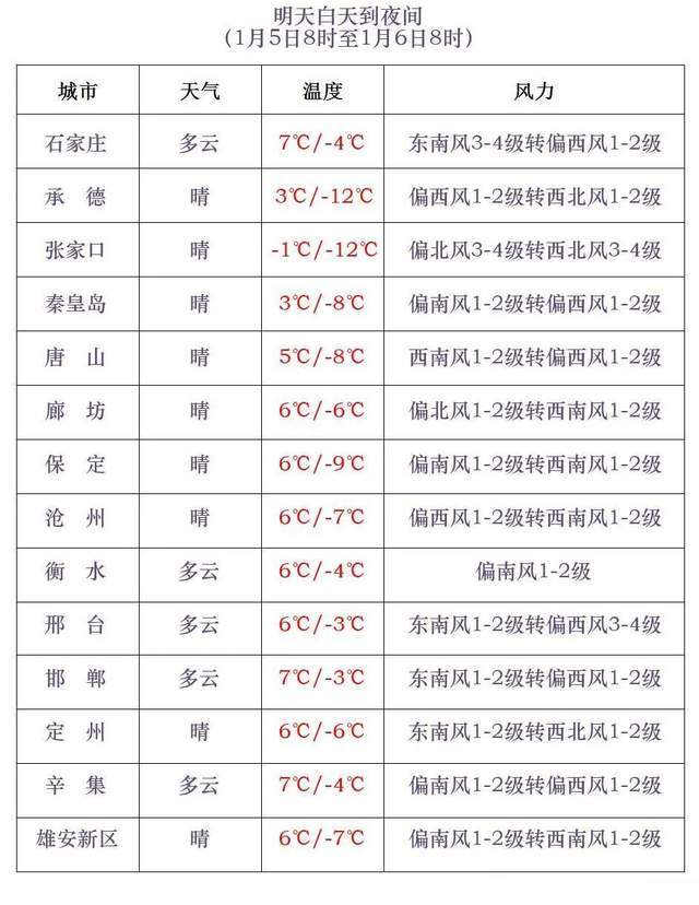 明天夜间到6日,保定、廊坊以南地区阴转晴,其中邯郸有小雪或零星小雪。其他地区晴间多云。