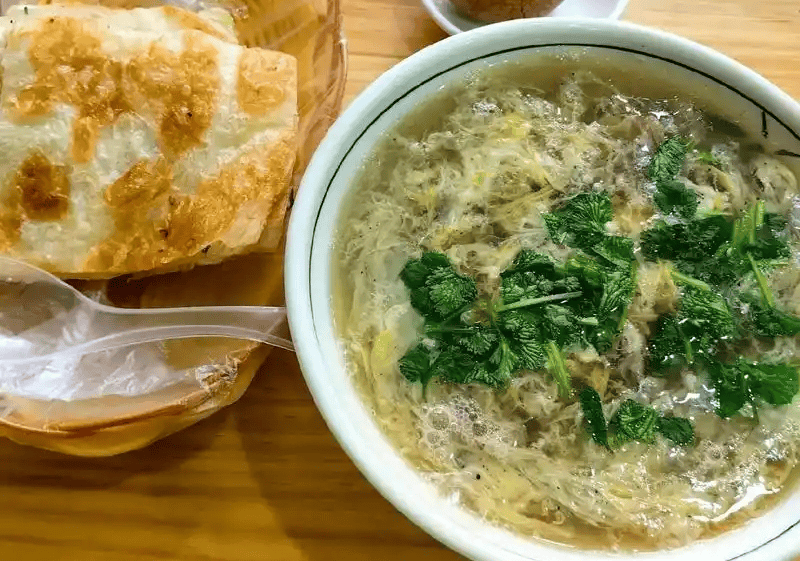 油饼母鸡汤,是河南早餐里的 “温润担当”。金黄酥脆的油饼,层次分明,咬一口 “咔嚓” 作响,麦香混合着油香,越嚼越香。母鸡汤则熬得奶白浓郁,鸡肉软烂脱骨,鲜而不腻,撒上葱花和胡椒粉,暖乎乎的喝下去,肠胃瞬间舒展开来。