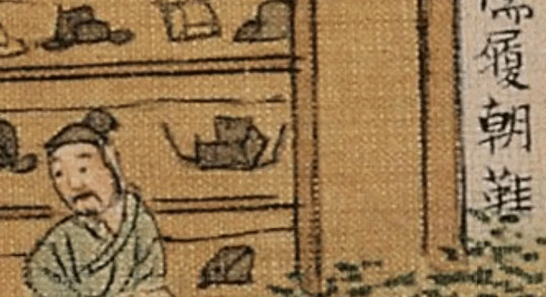 画作中的其他一些细节也佐证了这一点,譬如画面中间染坊的旁边有一家纱帽铺,店家旁边的货架上,放着一只像一大一小两个方块叠在一起的纱帽,两边还伸出两个“L”形弯折向上的帽翅,看起来就像是京戏中包公头戴的乌纱帽。但在明代,这种纱帽却并非演戏穿戴,而是现实应用之物,它是搭配明代公服所戴的展脚幞头。