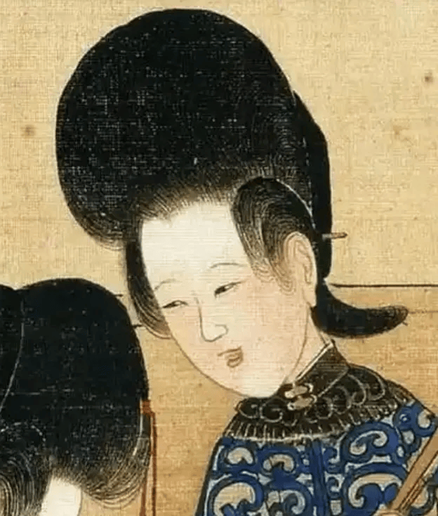 仇英本《清明上河图》中的女性发式,脑后头发微微翘起。