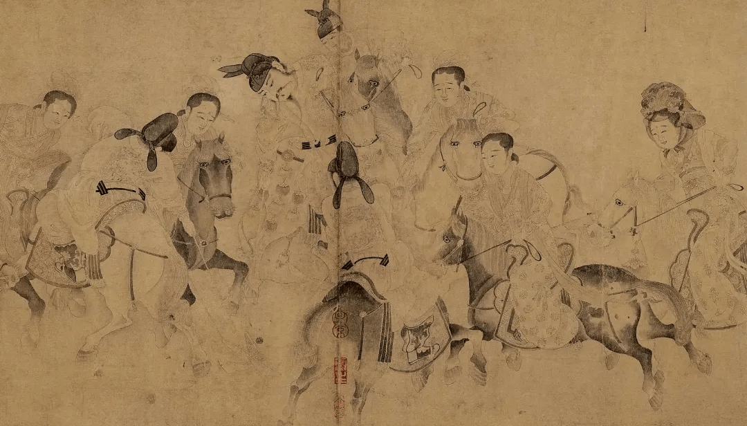 李公麟款《明皇击球图》局部,辽宁省博物馆藏。
