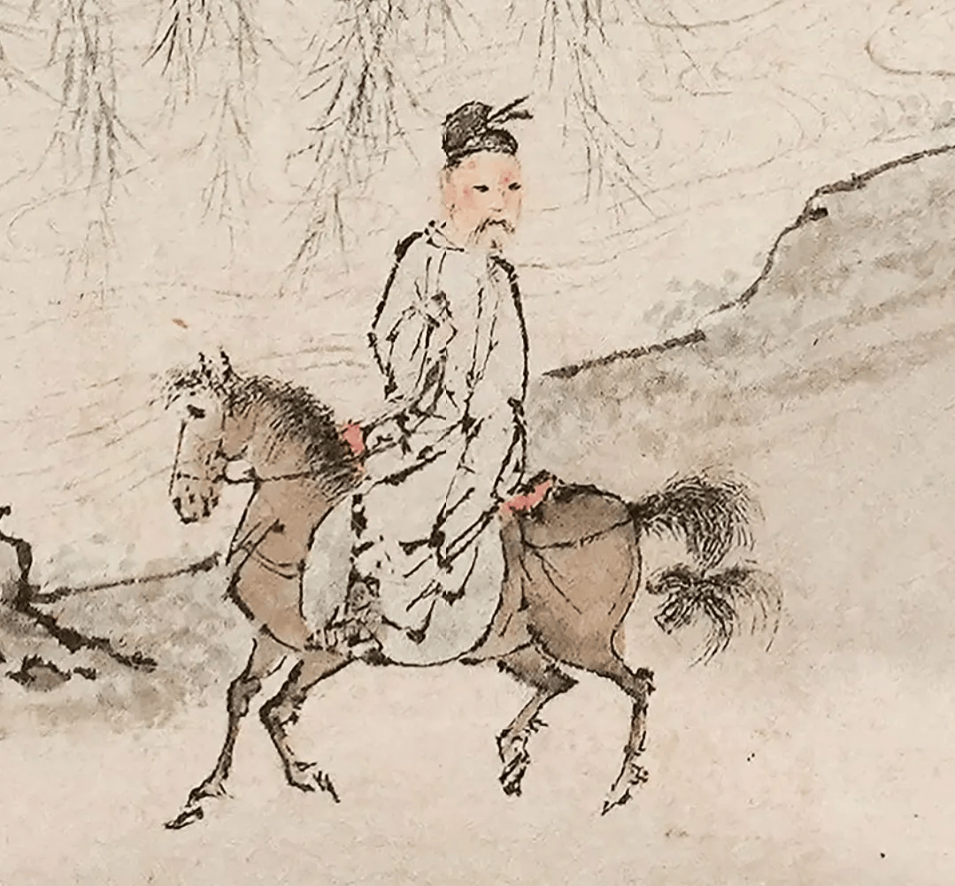 清代袁江《醉归图》中头戴奇怪的幞头的文士。