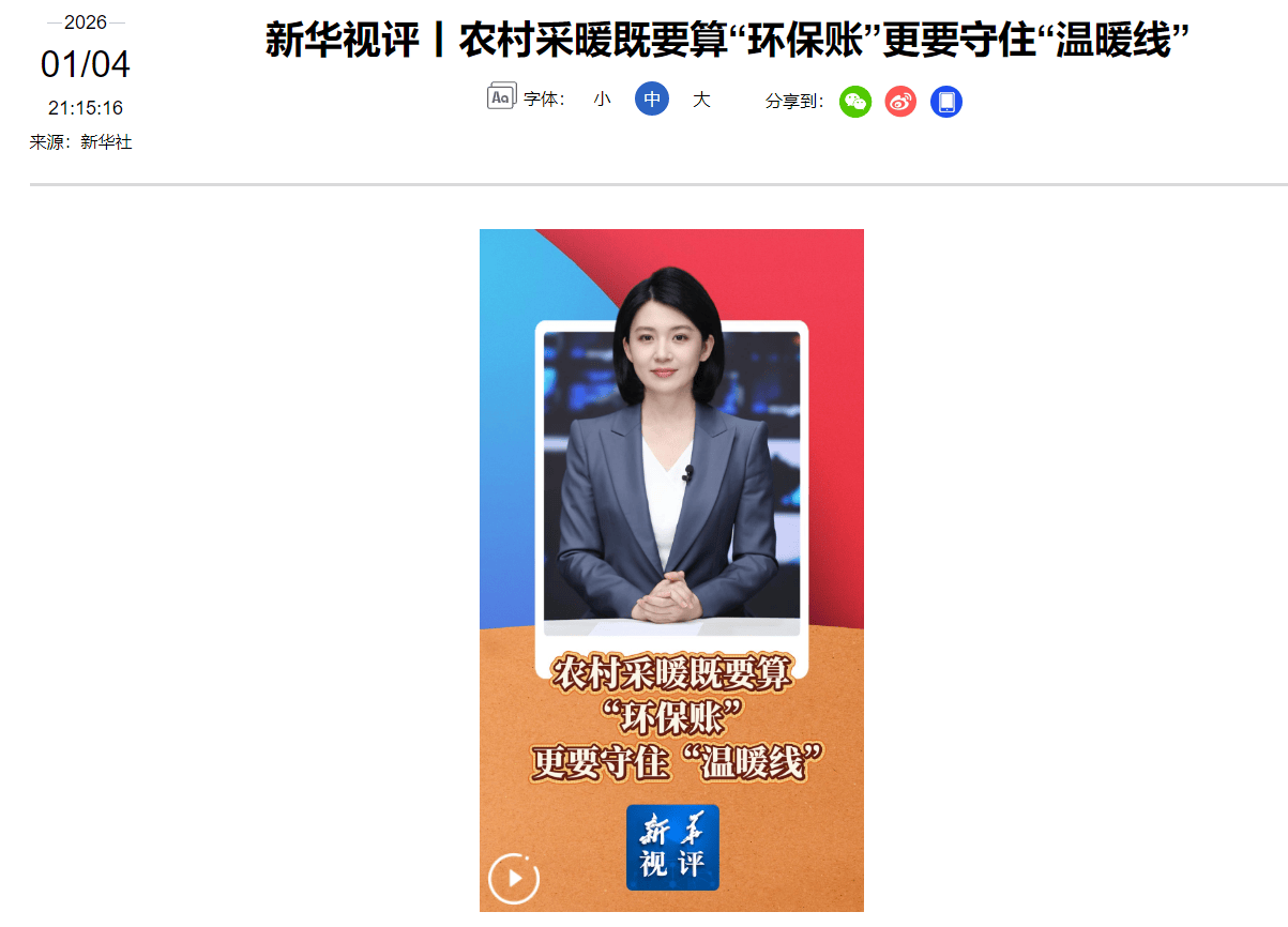 1月4日,新华社发表题为《新华视评丨农村采暖既要算“环保账”更要守住“温暖线”》的文章。文章称,清洁取暖,事关蓝天白云,更关乎千家万户的冬日暖意。然而,近期华北部分农村地区出现“煤改气”后采暖成本让农民望而却步的情况,引起社会关注。