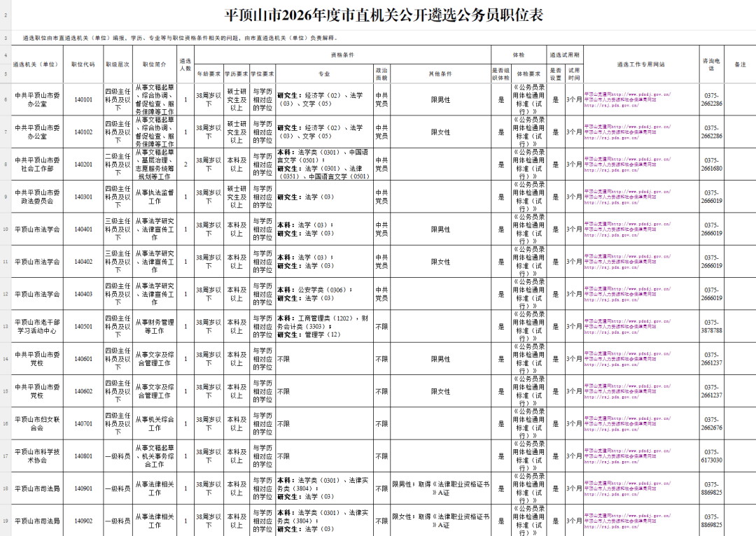 公开遴选职位为一级主任科员以下及相当职级层次职位,18个市直机关(单位)共计划遴选28人。各职位遴选人数、职位、资格条件等,详见《平顶山市2026年度市直机关公开遴选公务员职位表》(以下简称《职位表》)。