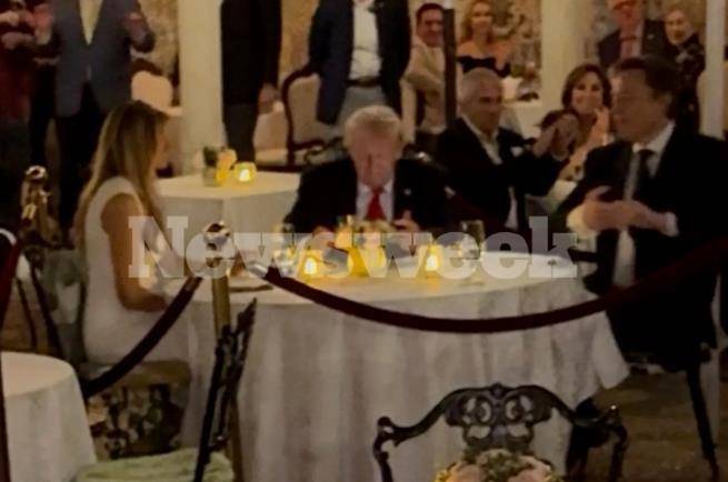 特朗普与马斯克(右)在海湖庄园用餐(《新闻周刊》图)