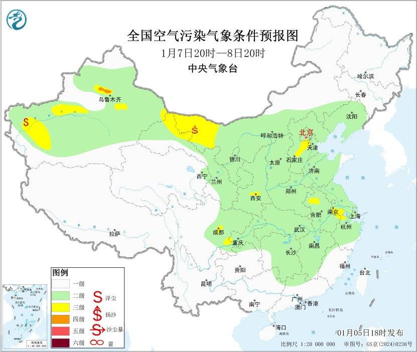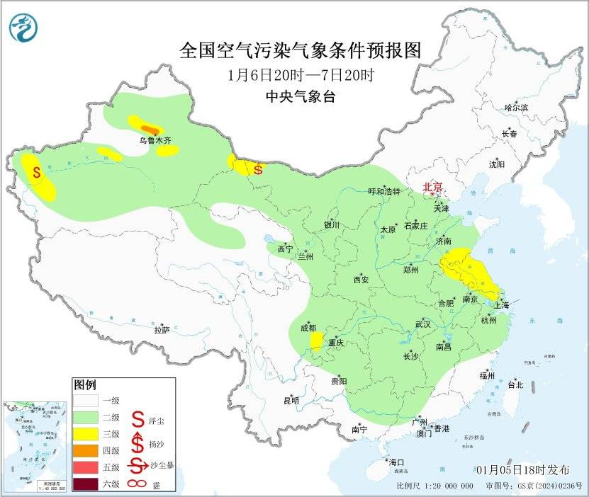 5日夜间至6日,区域大部大气扩散条件一般,区域中北部有短时轻度霾天气,局地中度霾。7日起,区域大部霾天气减弱消散。