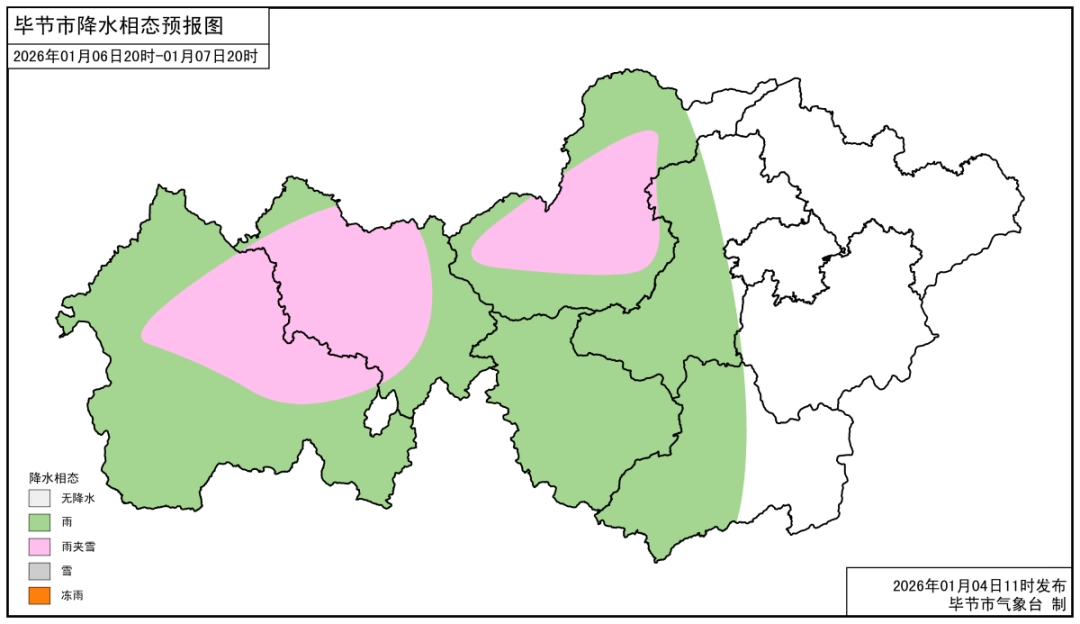 图3 毕节市1月6日20时至7日20时降水相态落区预报