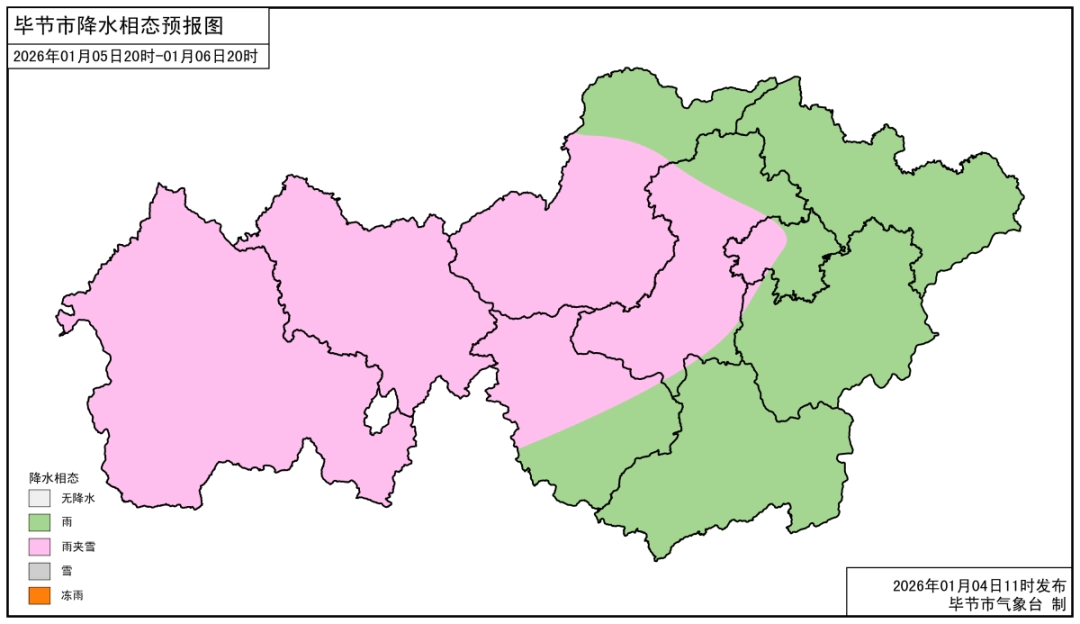 图1 毕节市1月4日20时至5日20时降水相态落区预报