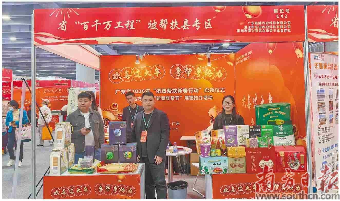 近日,广东省2026年“消费帮扶新春行动”启动仪式暨远方好物“新春年货节”在广州广交会展馆盛大开幕。在省“百千万工程”帮扶协作驻雷州工作队与雷州市发展和改革局的组织带领下,雷州市三家重点农业企业携鲜果型辣椒酱、特色粗粮面、优质丝苗米等多款本土特色产品集体亮相,向广大客商与粤港澳大湾区市民展示雷州现代农业的发展成果。