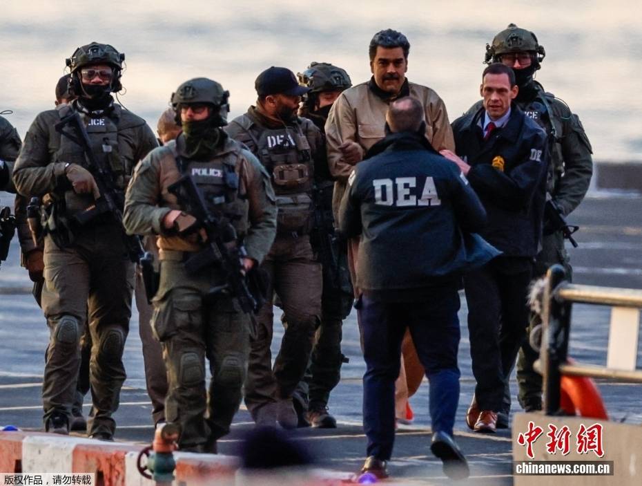 当地时间2026年1月5日,美国纽约,委内瑞拉总统马杜罗在美国执法人员押送下前往联邦法院。IC photo 图