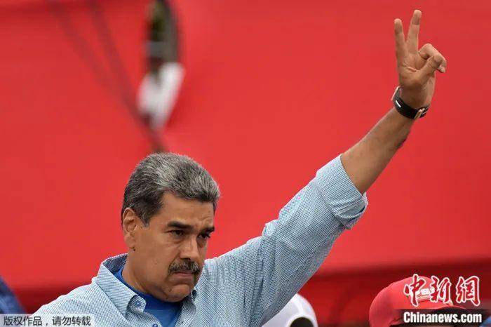 2024年7月25日,马杜罗在竞选集会上向支持者致意。