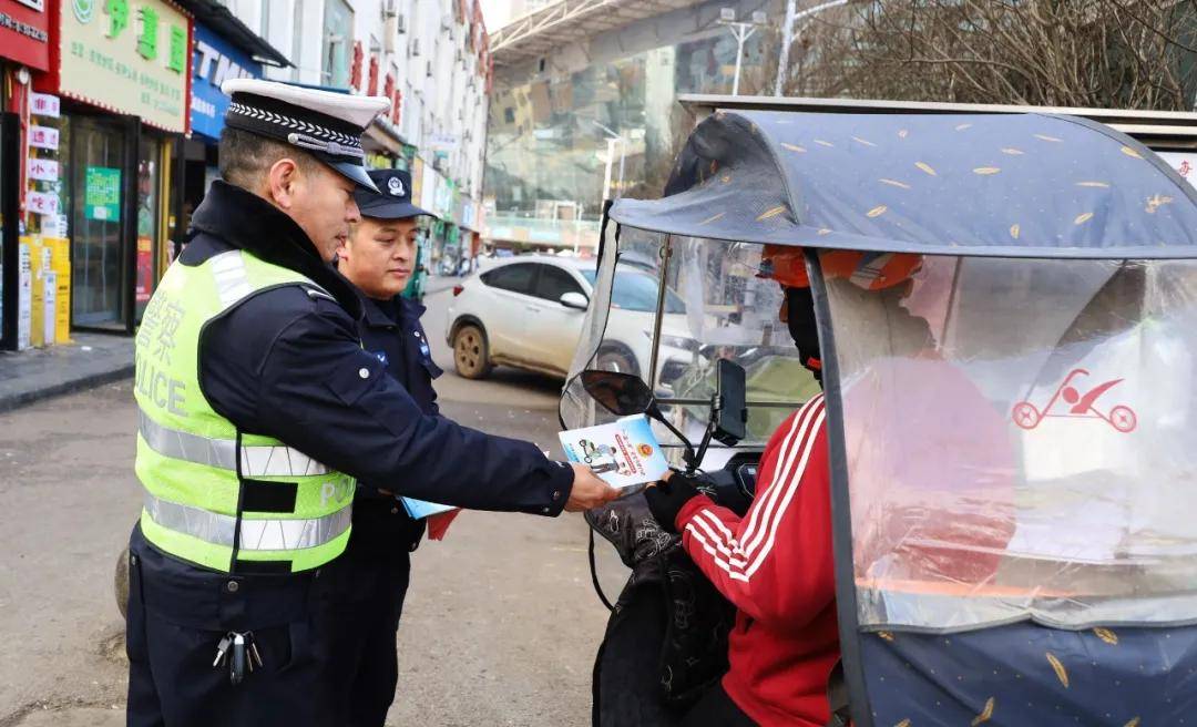 近期以来,随着年关将至,威宁自治县迎来返乡客流高峰,叠加冬季雨雪、凝冻、寒潮等恶劣天气影响,道路交通安全风险显著攀升。1月5日,威宁自治县公安局交警大队一中队联合六桥派出所、六桥街道综合治理服务中心,到凤山客运站、出租汽车行业协会、会展中心等重点区域,开展冬季交通安全知识宣传活动,为低温凝冻天气下群众出行安全筑牢防线。