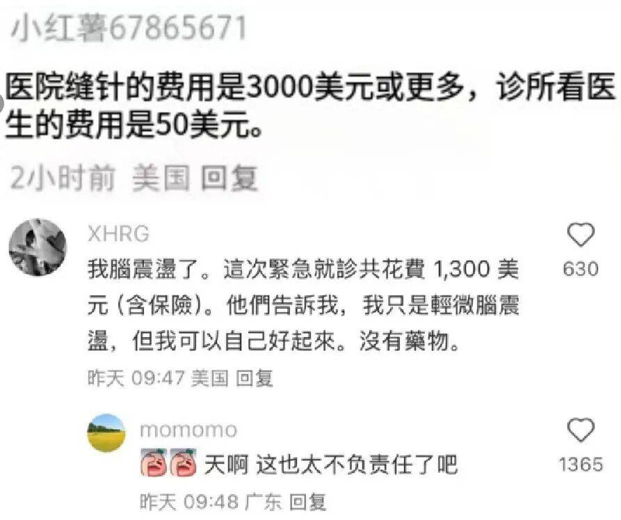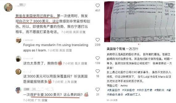 真正让“老外来中国看病”彻底引爆的关键性事件,是2025年初“美国封禁TikTok”引发的中美网友情报大对账。当时大批美国“TikTok难民”涌入小红书、抖音等中国社交媒体,中美网友之间在方方面面展开前所未有的情报大对账,其中让最美国网友破大防的一项就是中美医疗差异。有中美网友从救护车、口腔、手术费、检查费、生育费、诊疗效率等方面对两国医疗花费进行了详细比较: