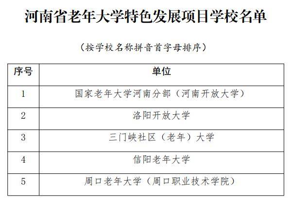 河南省教育厅办公室关于公布河南省老年大学特色发展项目学校的通知