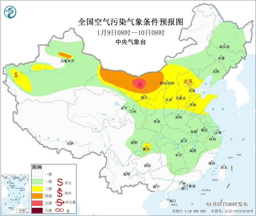 7日至8日,区域大部大气扩散条件一般,区域东部有轻至中度霾。9日起,区域大气扩散条件转好。