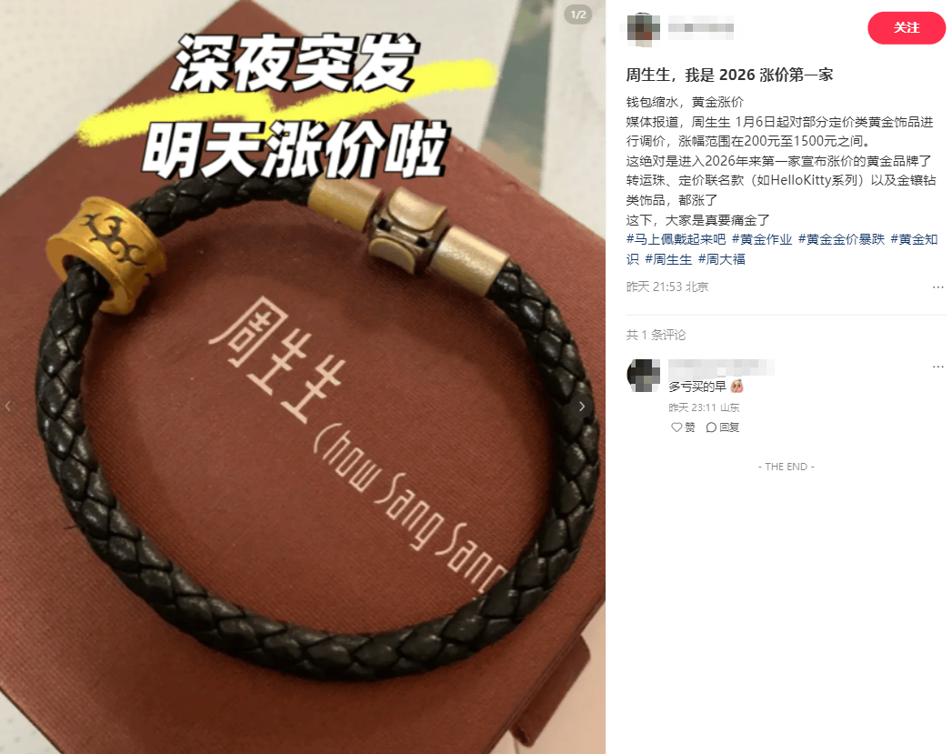 此次调价是2026年开年以来,国内主流金饰品牌的首次公开价格调整,直观体现了国际金价波动向消费终端的快速传导。在投资与消费双重属性的作用下,金价上涨不仅影响资本市场与机构配置,也直接关系普通消费者的购买决策。