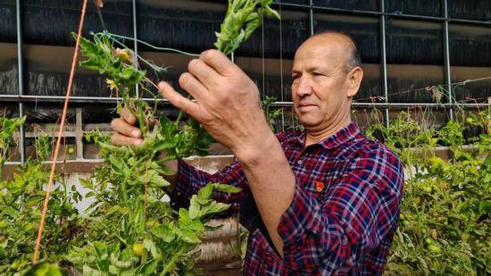 伊米尔阿孜·热杰卜共有四座温室大棚,一年种植两茬西红柿和一茬菠菜,其中西红柿年纯收入达8万元,菠菜年纯收入2万元,设施种植已成为他家稳定的增收来源。