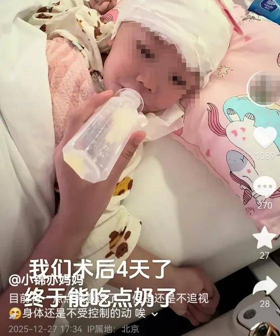 ▲小锦亦做完颅骨修复手术后 黄女士发布的视频截图