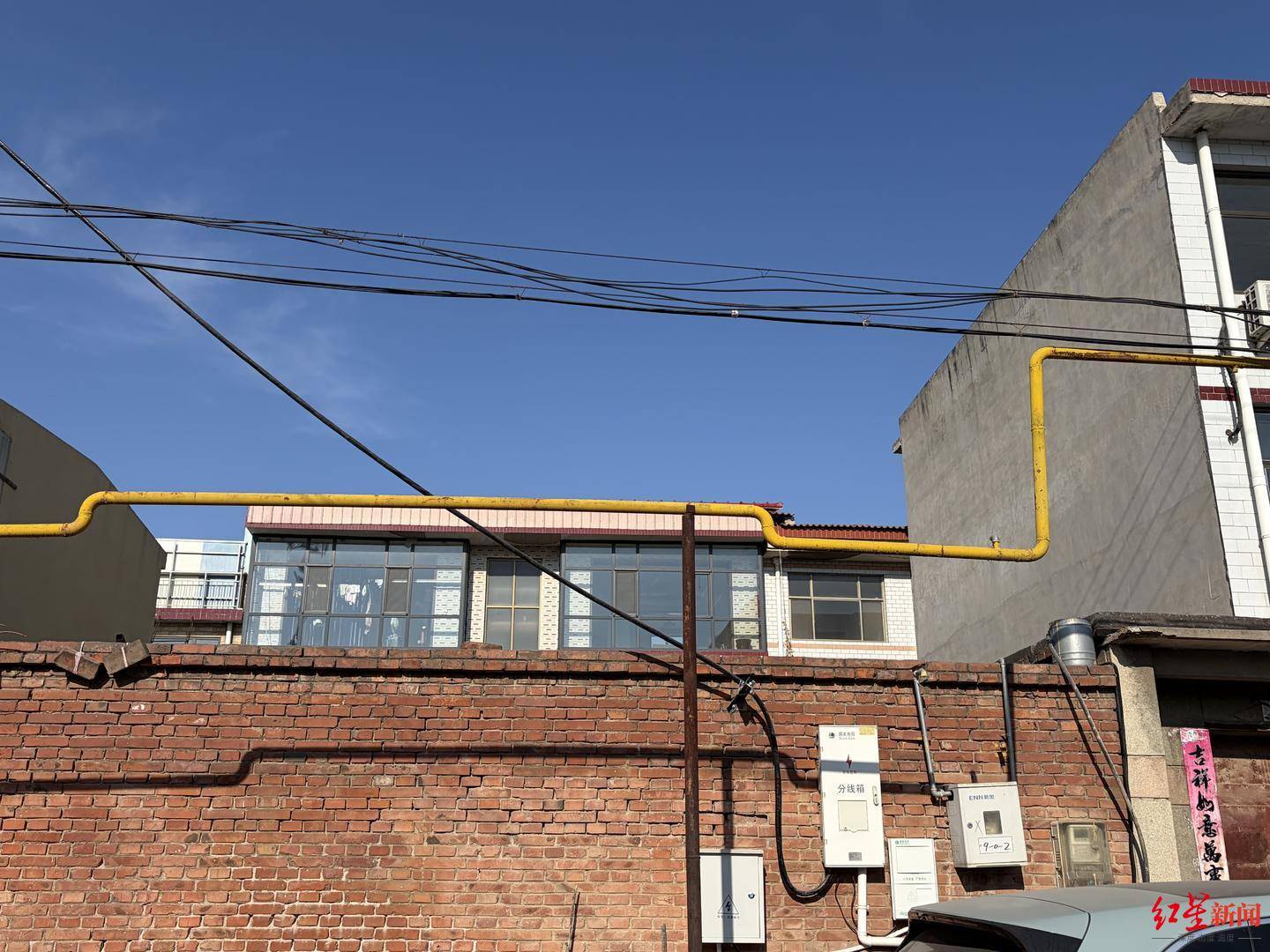 走在周女士夫妇生活的巷子里,黄色的天然气管道和其他线缆一样,贴合每一家住户的院墙四处延伸。为配合建筑的走势,管道需要不时在这里拐个弯、在那里绕个远。周女士的爱人计划在今年末把房子外墙再做一层保温,他咨询过,大概还需要2万元左右。