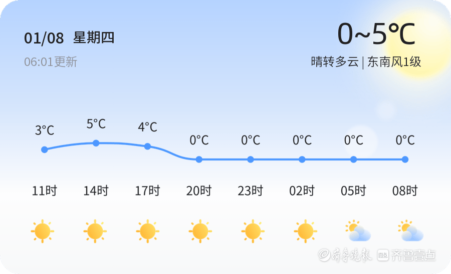 今天是2026年1月8日,农历十一月二十,枣庄市迎来晴转多云的好天气。当前气温为-5.2℃,东南风1级,空气湿度为69%,空气质量指数(AQI)为55,属于良好级别,对健康人群无明显影响。市民外出时需注意保暖,建议佩戴口罩以防护寒冷和细颗粒物。