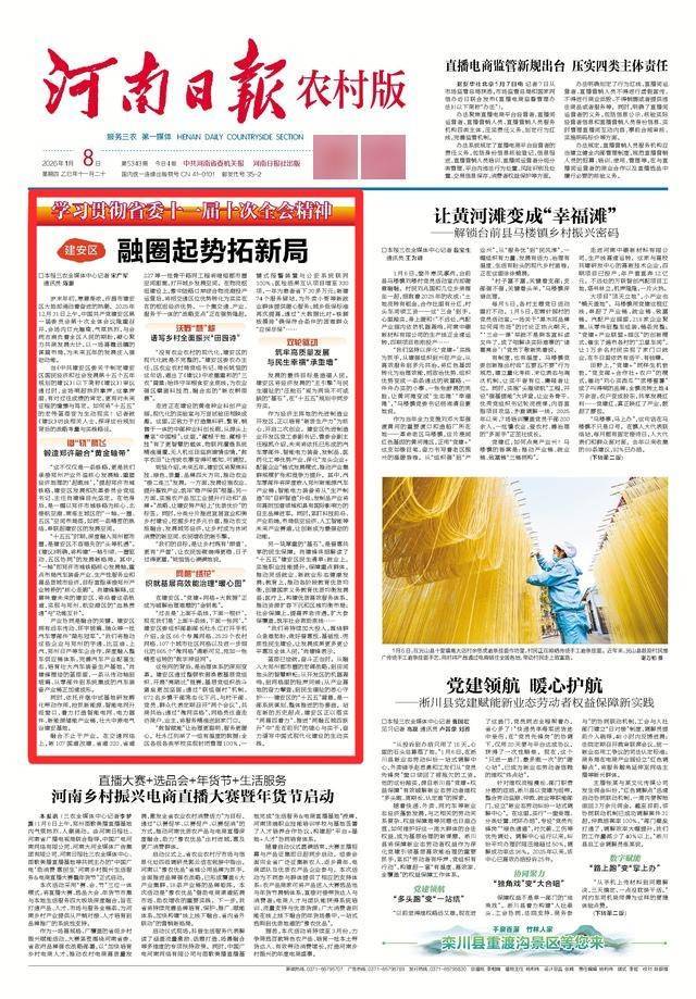 姚恒介绍,未来五年,建安区将聚焦科技、绿色、质量、品牌四大方向,推动农业“接二连三”发展。一方面,发展设施农业、提升畜牧产业,筑牢“稳产保供”根基;另一方面,实施农产品加工业提升行动和“品牌+”战略,让建安特产贴上“优质优价”的标签。同时,分类分片推进宜居宜业和美乡村建设,挖掘乡村多元价值,推动农文旅融合,发展城郊经济,让乡村成为休闲消费的新空间、农民增收的新引擎。