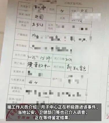 据工作人员介绍,月子中心正在积极跟进该事件,当地公安、社区、卫健部门等也已介入调查,正在等待相关鉴定结果。