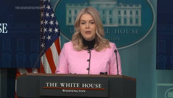 当地时间7日,白宫新闻秘书莱维特在简报会。美联社截图