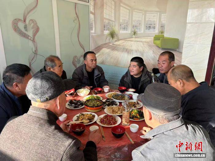 在四道湾子镇褚小龙家,屋里屋外摆了几张方桌,杀猪菜、血肠、烀肉等菜肴陆续上桌,满满当当摆了一桌子。乡亲们围坐在一起,谈天说地,话题从今年的收成聊到明年的规划,笑声此起彼伏。