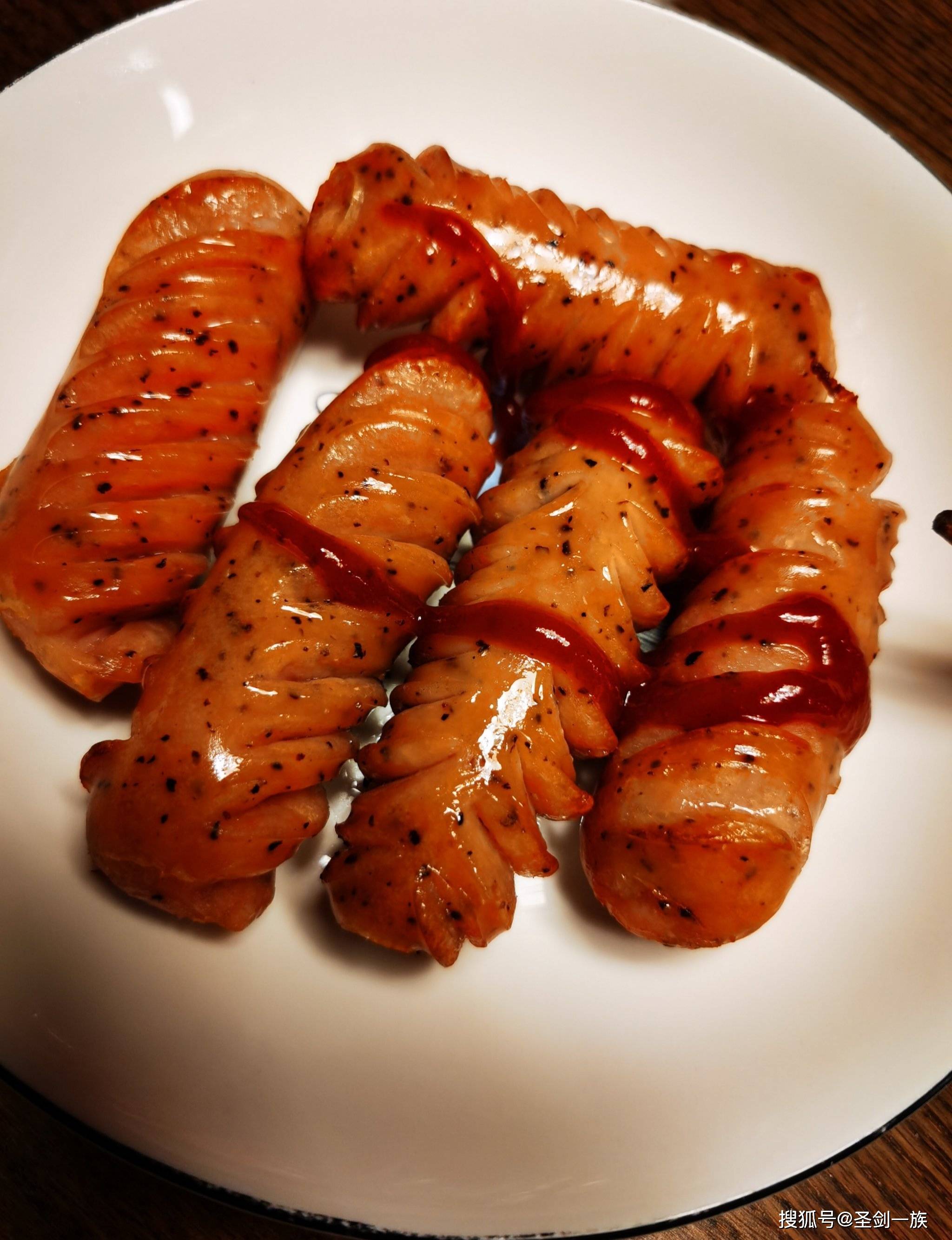 1. 火腿肠切段,用竹签串起,这样炸制时更方便操作。
