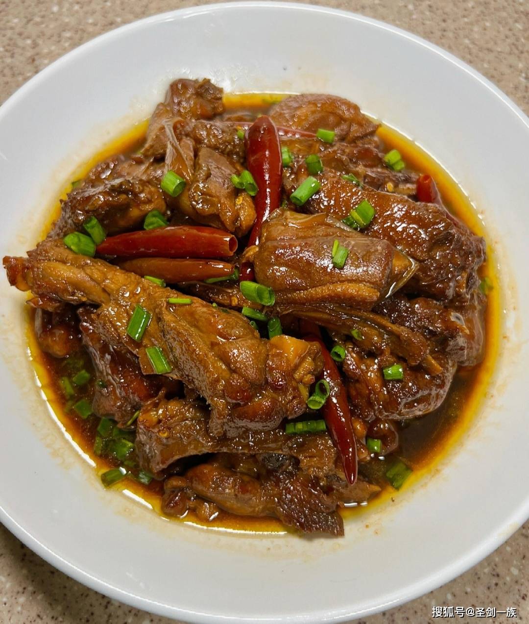 7. 汁浓油亮时关火,先拣出鸭块装盘,再浇汤汁,撒葱花,趁热食用酥烂不碎。