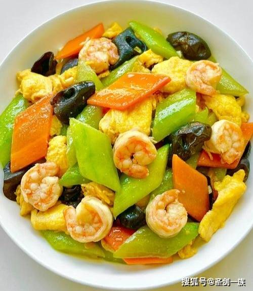虾、鸡蛋、黄瓜、胡萝卜、木耳、蒜